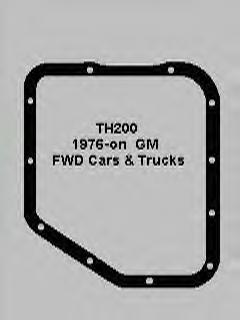 200 THM Used 1976-80. The 1981-87 version was called 200C and had an electronically controlled lock-up torque converter. There were MANY versions and were used in various GM models as well as some Jaguars and Isuzus. It had an aluminum case. Pan shape was similar to 350 THM, but was embossed "METRIC". It had no modulator and there was no removable extension housing. With the exception of the manual lever seal and the rear seal and bushing NONE of the parts for this transmission are interchangeable with the 350 THM. This transmission was an hydraulically controlled 3 speed. Bottom cooler line is the cooler return line. Band adjustments: