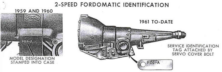 Fordomatic 2 speed This was used in various Ford products from 1959-64. This transmission had an aluminum case. It was an hydraulically controlled rear wheel drive transmission.