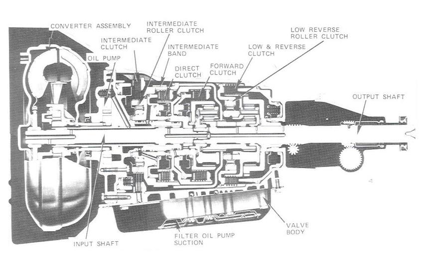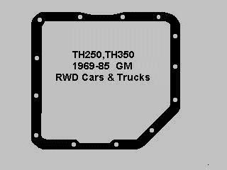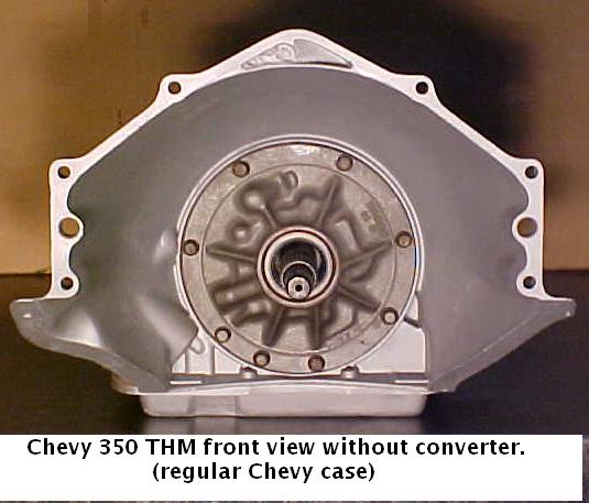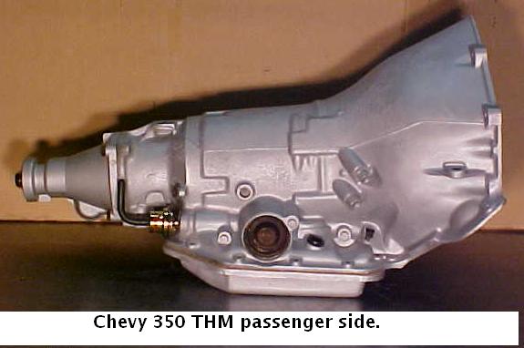 350 THM Used 1969-80. The 1981-86 version was called 350C and had an electronically controlled lock-up torque converter. From 1980-84 there was a 250C with an adjustable band for 2nd gear. There were MANY versions of these transmissions and were used in various GM models. It had an aluminum case. Pan shape is similar to 200 THM, but is not embossed "METRIC". It has a modulator and there is a removable extension housing. With the exception of the manual lever seal and the rear seal and bushing NONE of the parts for this transmission are interchangeable with the 200 THM. This transmission was an hydraulically controlled 3 speed. Top cooler line is the cooler return line.