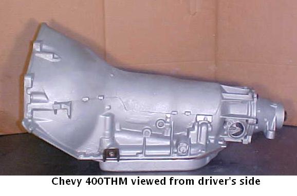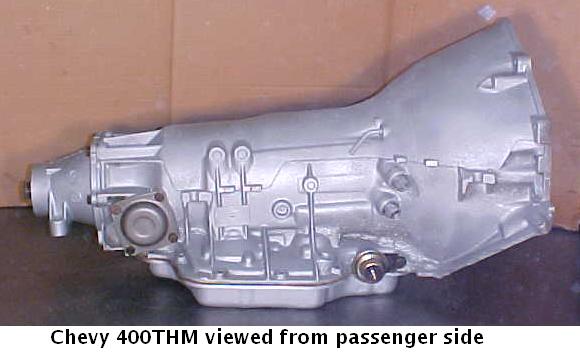 400 THM Also known as 3L80 Used 1964-98. There were MANY versions and were used in various GM models as well as some Checker Cabs, Jeeps, Jaguars, Bentleys, Ferraris, and Rolls Royces. The transmission was an hydraulically controlled 3 speed. Top cooler line is the cooler return line.