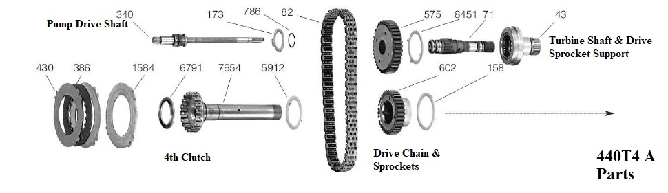 SPROCKETS, 4th CLUTCH, PUMP DRIVE SHAFT, TURBINE Shaft, and DRIVE