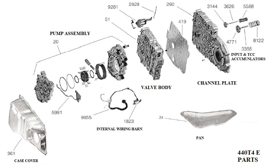 PUMP ASSEMBLY, INTERNAL WIRING HARNESS, VALVE BODY, CHANNEL PLATE, &
