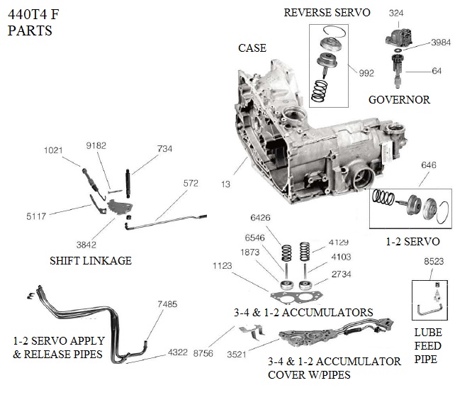 RELEASE PIPES, SHIFT LINKAGE, CASE, REVERSE SERVO, GOVERNOR, 1-2