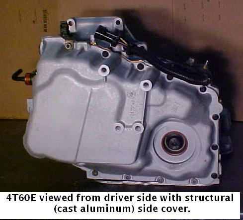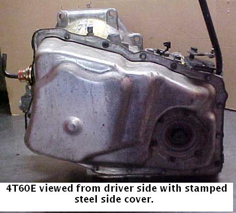 4T60E Used 1991-up in many GM models (replaced the 440T4, but was phased in, so there is MUCH overlap). It has an aluminum case. It is distinguishable from the 440T4 in that it has a detachable