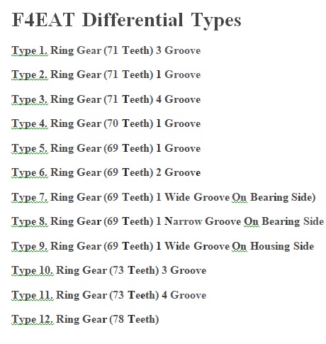 F-4EAT Parts for Sale I can get 100's of additional parts for these transmissions that I don't yet have listed. E-mail me with a list of other parts you may need for these. If I have them (or can get them) I will list them for you. ATTENTION International Customers If you want parts shipped to International addresses you must fill out the International Shipping Cost Request form INSTEAD of clicking on "Add to Cart" so I can quote International Shipping Rates I will