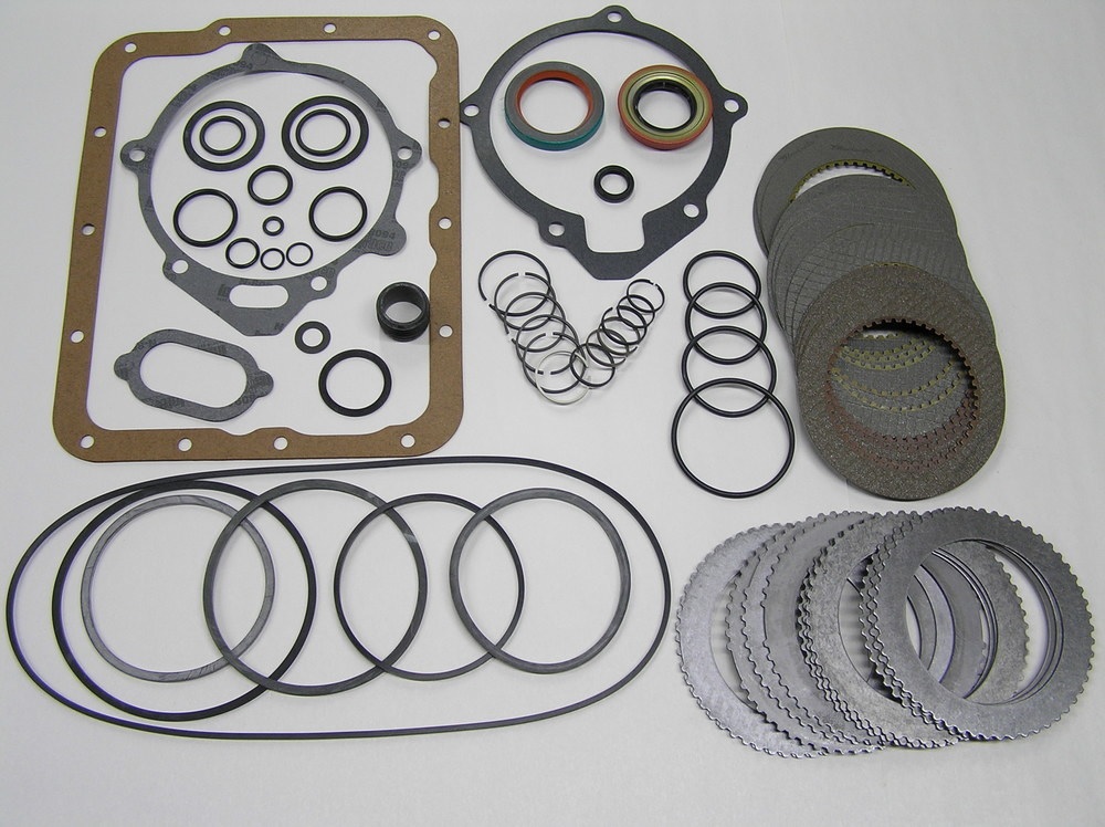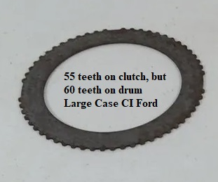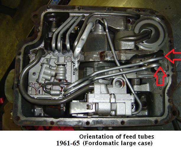 of the eight. 16. Tighten the screws snuggly and the 7/16" head bolts to 65 inch-pounds. 17. When you are done, verify the operation of the manual lever and the kick-down lever. You should feel the detents when you move the manual lever AND you should feel the spring pressure when the kick-down lever pushes the kick-down valve. It is not as complicated as all of this sounds and using this method, you don't need to remove the servos. Speedo Gears (Drive) Manuals (1) Overhaul Kit includes: gaskets, o'rings, lip seals, sealing rings (rotating ones only), and metal clad seals (but no clutch plates). (2) You MUST E-mail me with the year (or even BETTER the model code from the tag) of your Fordomatic transmission AFTER you order (to insure the kit I send you is the one you need). (4) If you are not sure which size case you have go to HERE (5) This case has an extra hole near the bell housing to accept a shift cable in ADDITION to the hole where two levers that go through the case (6) Can be used in large case transmission, but gears are .686 tall instead of the large case's originals that were .750 tall. (The originals are almost impossible to find anymore.) PLEASE NOTE! For the 1959-60 large case transmission the pump body is a straight bolt in swap, but for the 1961-65 you must use your original pump to center the bell housing. After you tighten the bell housing to case bolts, remove the old pump and bolt the replacement pump body to the large case stator support and the reinstall pump. (7) Smooth No Pocket Style is only style currently available (This style will also replace the "Pocket" style: Do not leave anything out. Use the hub and spacer as it is. Some spacers come with an additional washer with 2 tabs; install it as it came out. The pocket is not needed. If you do NOT feel comfortable with the above method you can choose the NEW Conversion Kit that has recently been added. (8) If you have a Two speed, it takes the ball & spring. If you have a Three speed, it takes the plunger & spring. Neither of the two parts will work in the other type transmission. Make sure to E-mail me a picture of yours so I can send you the right one! You CAN adapt a two speed case to work with the three speed detent lever by using the conversion kit. (9) In mid-1956 Ford changed the mounting hole for the speedometer adapter on SOME Fordomatics from entering the extension housing in a downward slope to entering in an upward slope. The two styles are NOT interchangeable since the speedometer gear went from riding on the bottom of the output shaft to riding on the top of the output shaft. (10) This drum requires input shaft with approximately a .180" thick flange (some drums require input shaft with .220" thick flange). They are not interchangeable. (11) This drum requires input shaft with approximately a .220" thick flange (some drums require input shaft with .180" thick flange). They are not interchangeable. (12) If the Rear Drum is smooth all the way around where the band rides, it takes the thick lined band. (13) If the Rear Drum has holes in the surface around where the band rides, it takes the thin lined band. (14) This input shaft has approximately a .180" thick flange (some shafts have a .220" thick flange). They are not interchangeable. (15) This input shaft has approximately a .220" thick flange (some shafts have a .180" thick flange). They are not interchangeable. (16) Rebuildable core must arrive back to me within 30 days of your receipt of parts or core refund will be forfeited. PLEASE return pump cores. They are becoming scarce and I MAY not be able to get them in the future if I can't get the cores to my supplier to be repaired. (17) E-mail me a picture of your part AND if it has a third tube (going to the pressure regulator) so I can make sure I send you the correct version. (18) Master Rebuild Kit includes: gaskets, o'rings, lip seals, sealing rings (rotating ones only), and metal clad seals, steel (unlined) clutch plates, and friction (lined) clutch plates. (20) This was "originally" listed as a "selective", but Ford almost always used one of those "selective" sizes. You will receive the one that comes out of the transmission I get it out of. (21) Be aware that Ford USUALLY used a seal that had an additional "dust boot" as part of the seal. Those are really hard to install without a special driver AND they tend to trap moisture causing premature rear seal failure. This one does NOT have that boot on it and lasts MUCH longer) (23) Make sure you E-mail me rather the teeth are straight cut or slanted cut. (24) Rebuildable core must arrive back to me within 30 days of your receipt of parts or core refund will be forfeited. (25) Core must be shipped to me so I can ship it to my supplier. He will get it recovered and will ship it back to me. Then I will ship it to you. This will take a few weeks. My address is: Charlie Tranny, 1043 Savage Rd., Belleville, MI 48111 (26) Rebuildable band core(s) must arrive back to me within 30 days of your receipt of parts or core refund will be forfeited. No refund for broken band cores. PLEASE return band cores. They are becoming scarce and I MAY not be able to get them in the future if I can't get the cores to my supplier. (27) This is an R&R ONLY part, which means that a rebuildable core must be shipped to and received by me before I can ship your part to you, due to extreme shortage of good cores. My address is: Charlie Tranny, 1043 Savage Rd., Belleville, MI 48111 (28) You MUST E-mail me a picture of the parts you need. Ford used at least three different designs and yours MAY differ from the parts in the picture I have linked. (29) You MUST E-mail me a picture of the part you need as well as any casting numbers on the aluminum housing assembly to make sure I send you the correct part. (30) These kits are made to fit all Large Case cast iron case automatic transmissions used in Ford, Mercury, Edsel and Lincoln from 1958-1965. This includes the PBE & PBB code unit