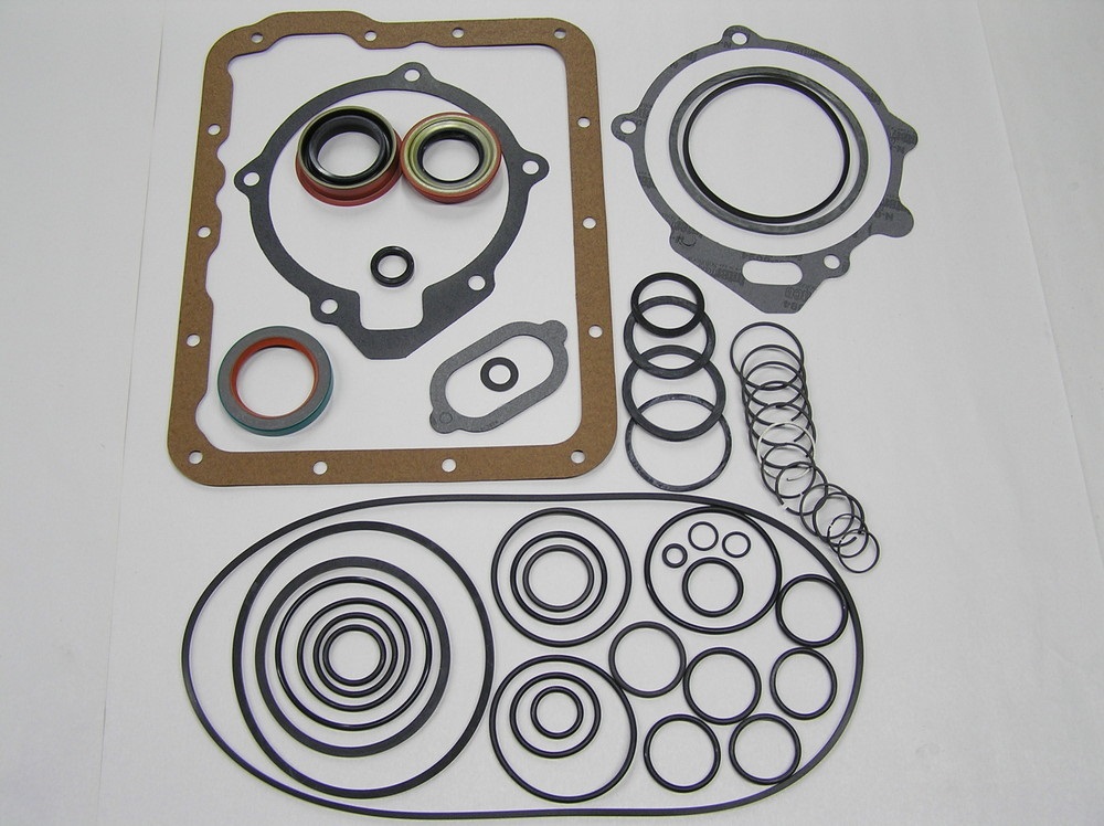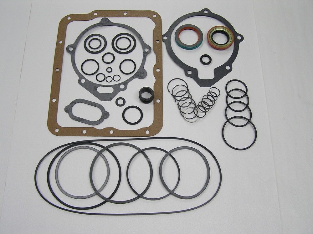 Sealing Rings Snap Rings Medal Clad Seals Seals/Gaskets To insure success when installing this pan gasket A. Clean ALL of old gasket material off.B. Peen the bolt holes i. Put the peen end of a ball peen hammer into a bolt hole on the case side of the pan rail. ii. Pound on the hammer face with a BRASS hammer until SLIGHTLY domed away from the case side of the pan rail. iii. Repeat for each bolt hole. C. Install dry (cork or composite; NEVER rubber) gasket with NO added adhesives. D. Install all bolts to finger tight. E. Tighten each bolt until the gasket just STARTS to show VERY SLIGHT deflection out from pan. F. Make sure you tighten bolts in an alternating side pattern. G. Tightening beyond this point only splits the gasket and promotes leaks. Procedure to replace manual shaft and/or kick down seal(s) Valve body AND the shift linkage must be removed to replace the manual shaft seal and/or kick done seal(s). To make that easier follow these steps: 1. After removing the pan, remove the two curved tubes that are in your way. 2. Remove the four 7/16" head bolts that hold the valve body together.