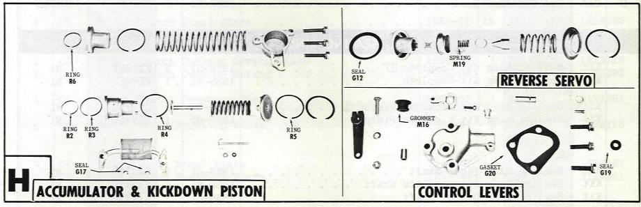 ACCUMULATOR & KICKDOWN PISTON & REVERSE SERVO & CONTROL LEVERS